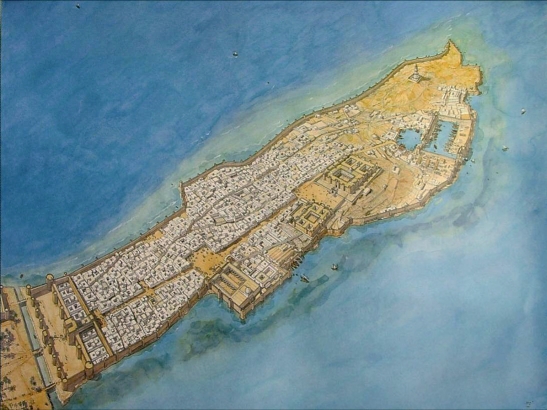 Ricostruzione assonometria della città di Mahdiya nel X secolo (da J.-Cl. Golvin).